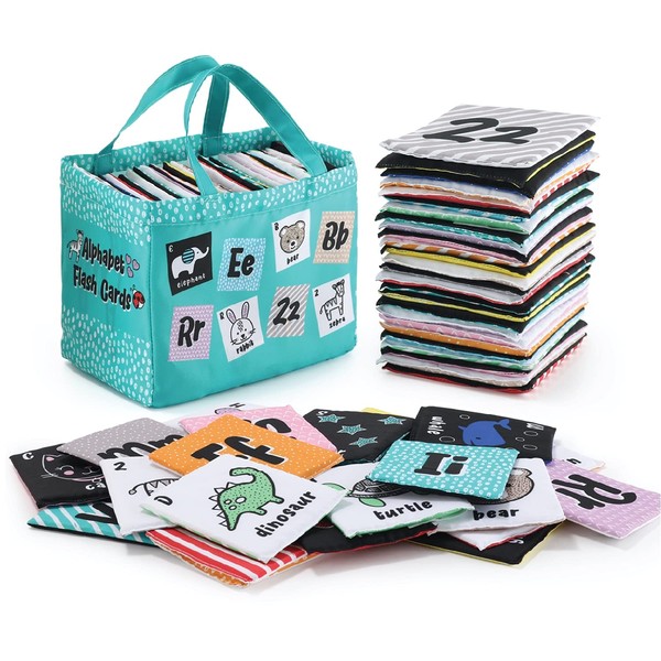 - CUTE, ENGAGING DESIGN – Our colorful Montessori Flash Cards feature a vintage design that will capture the imagination of babies and toddlers and make teaching and learning the ABCs fun. This set contains 26 reversible cloth ABC flash cards. Each card features both the upper and lowercase letters to promote visual learning and language development on one side and a word and image corresponding to each letter on the other.