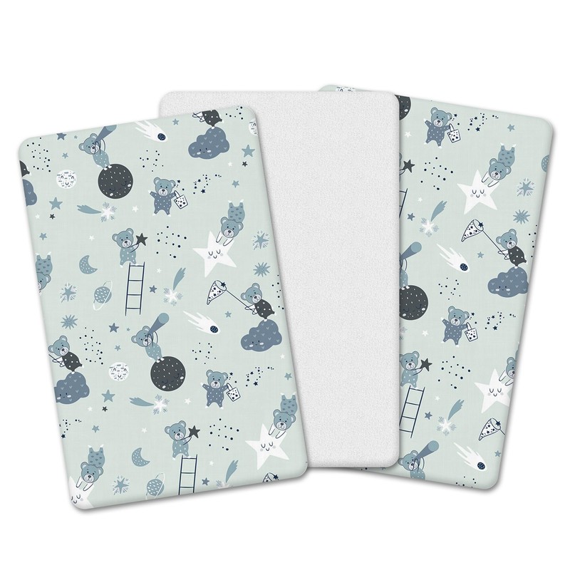 - 🌟 The Perfect Trio | A premium pack of 3 crib fitted sheets, crafted with high-quality materials to ensure utmost comfort and softness. This bedding set is designed to provide your child with a pleasant and restful sleep experience. It includes 2 fitted sheets and 1 waterproof mattress protector, catering to the essential needs of your little one. It is also Next To Me compatible, as it fits snugly on mattresses for cribs or bassinets measuring 83 x 50 + 13 cm.