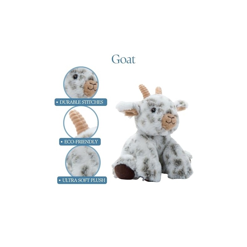 The Petting Zoo Goat Stuffed Animal Plushie, Gifts for Kids, Wild Onez Wildlife Barn Animals, Goat Plush Toy 9 inches