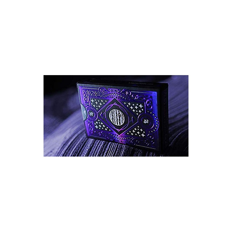 The Planets is a collection of decks representing the planets in our solar system, starting closest to the sun and moving outwards into the surrounding universe. The fifth deck of this series is Jupiter, featuring one-eyed bull-like creatures. This is the most luxurious Vanda deck series to date, with tuckbox features that include red holographic foil, white foil, interior foiling, and embossing. From the artist: "Jupiter was named after god of the sky and thunder and king of the gods in Ancient Roman religion and mythology. The Romans regarded Jupiter as the equivalent of Greek Zeus. "So, I want this creature to be strong and powerful. There's a story in Greek mythology when Zeus metamorphosed into a beautiful white bull. I took this as an inspiration. But I didn't want just to draw an ordinary bull, more like a creature that resembles a bull. The crown is big and beautiful, because Jupiter is king of the gods. Now, the one eye. On the actual planet, the Jupiter's great red eye (or the red spot) was my inspiration. So, just like the planet has one big eye, so do the creatures living in it. I think it's nice symbolism." 2018 Release