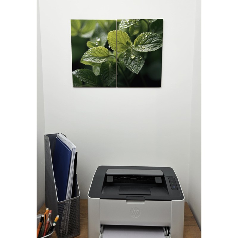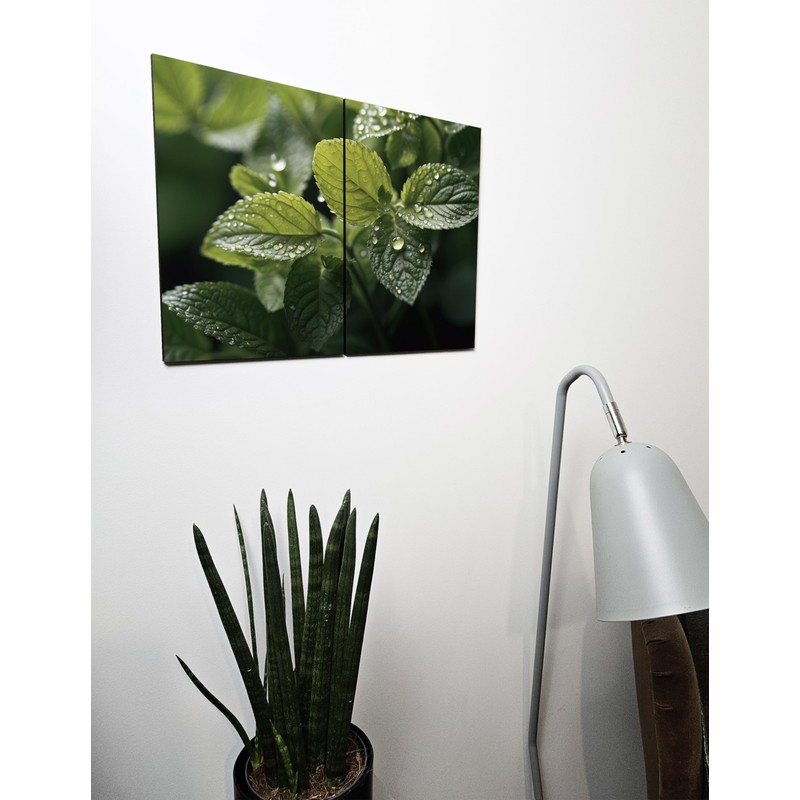 - 🍃 Two A4 MDF wood panels depict a lifelike, abstract close-up of lemon balm leaves, ideal for a nature-inspired interior.