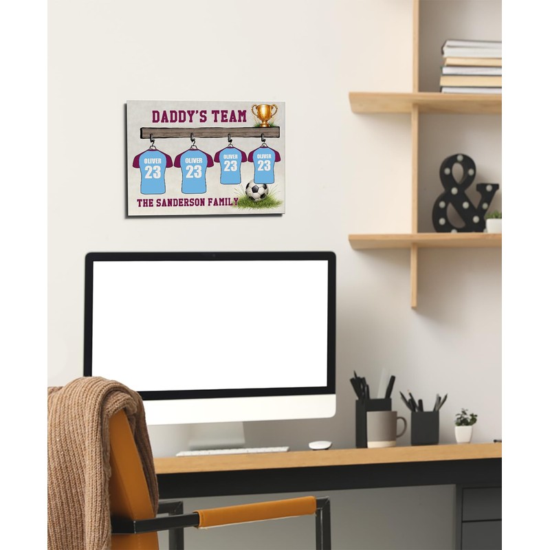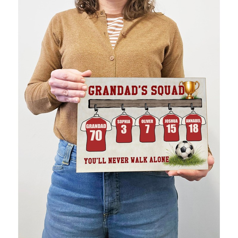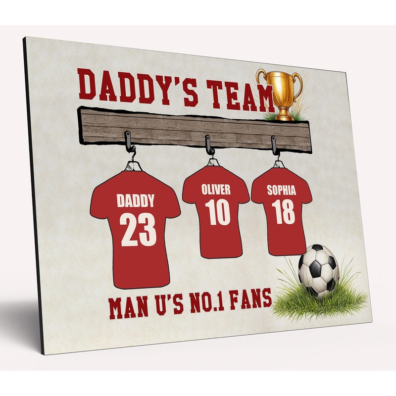 The Plum Penguin Personalised Dad Gift Football Shirts Choose Your Team Colours Father's Day Hanging Custom Names Family Kids Wooden Plaque Best Dad Grandad (1 Large & 2 Small)