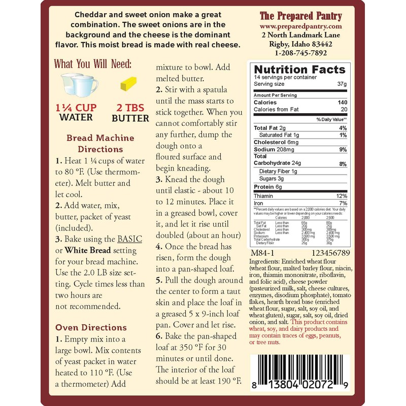 The Prepared Pantry White Cheddar and Sweet Onion Bread Mix; Single Pack; For Bread Machine or Oven