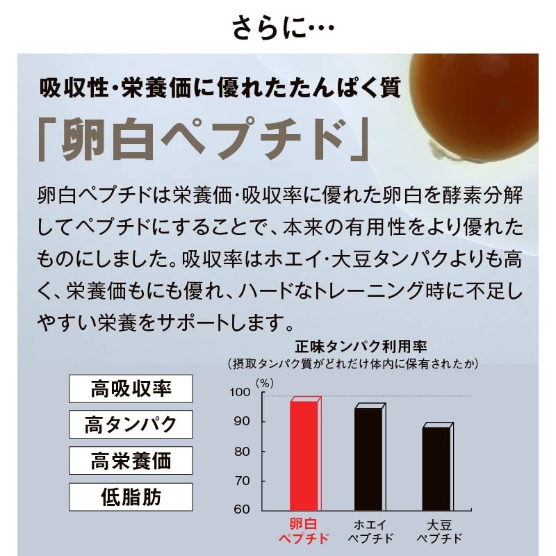 - ■ Egg-white peptide (egg-derived protein); By decomposing egg white into enzymes and making it peptides, we have made it more useful. Absorption rate is higher than whey and soy protein, and has excellent nutritional value