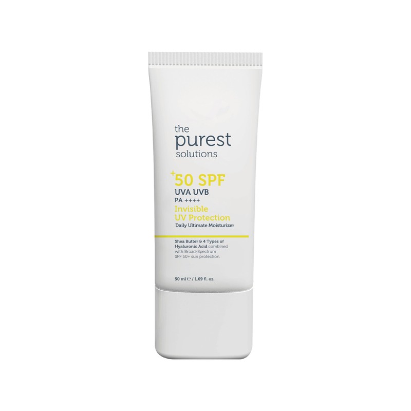 The Purest Solutions Invisible UV Protection (Intensive Day Moisturiser SPF 50+) - Hyaluronic Acid & Shea Butter for Daily Moisture - Sun Protection - All Skin Types - Vegan (50 ml)