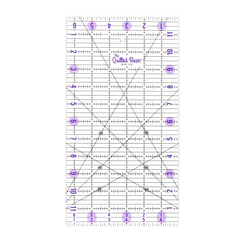 The Quilted Bear Quilting Rulers - Transparent Acrylic Non Slip Quilting & Patchwork Ruler with Clear Black Lines & 30, 45 & 60 Degree Angles (6.5" x 12")