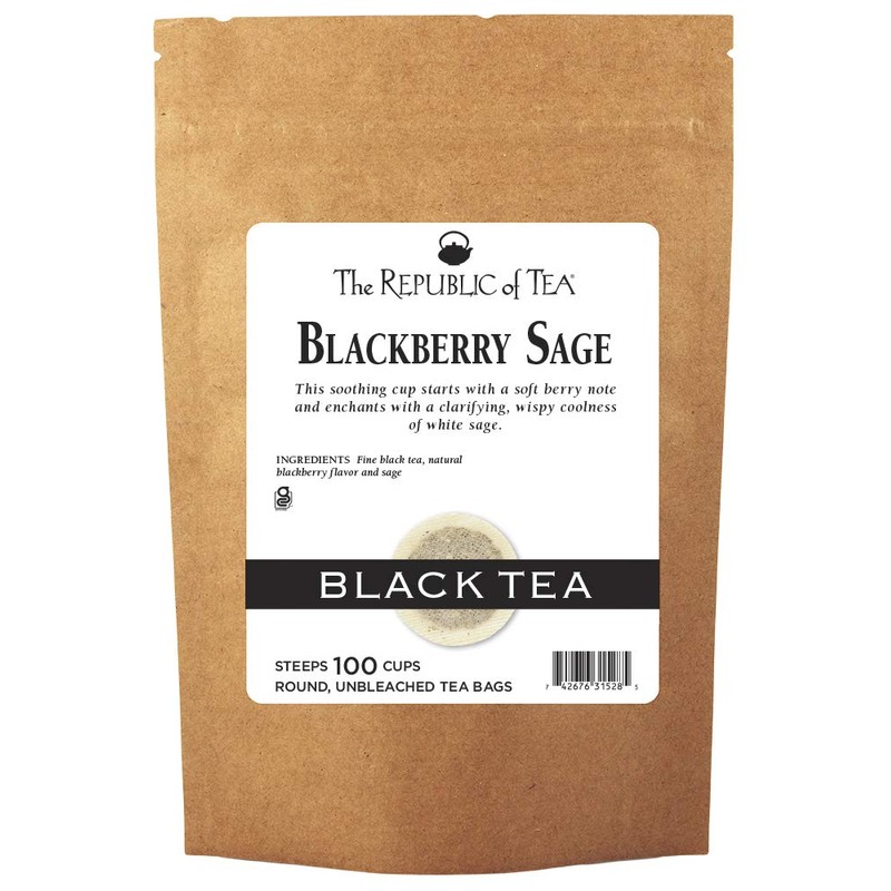 The Republic of Tea Gourmet Blackberry Sage Black Tea, Refill Bag | 100 Tea Bags, Gourmet Black Tea