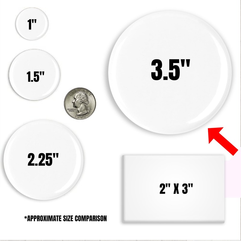 • ABOUT: This item measures 3.5" Round with a flat magnet on back