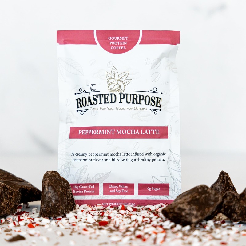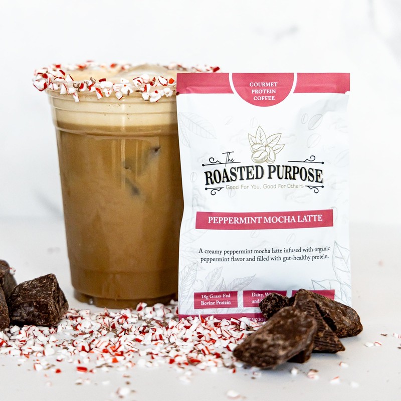 The Roasted Purpose Peppermint Mocha Latte Instant Organic Coffee with 18g of Grass-fed Collagen Protein, Dairy-Free, Sugar-Free, 10 Pack