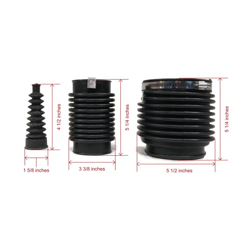 - Includes - (1) Shift Cable Bellow with Stainless Hose Clamps, (1) Exhaust Bellow with Stainless Hose Clamps, (1) U-Joint Bellow with Stainless Hose Clamps, (1) Sealed Gimbal Bearing, (1) 5/8" Water Intake Hoses, (1) Zip Tie & (1) Out Drive Mounting Gasket Kit with O-Rings; comes as shown in the first image