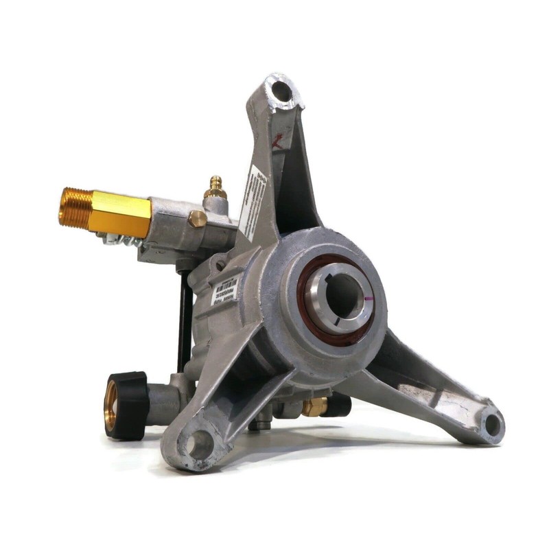- This pump mounts vertical and is a rear facing (water inlets/outlets come out of the rear of the engine). Pump needs at least 6HP to handle PSI. Pump head can be flipped. Thermal relief valve comes pre-intalled. This is a sealed unit, no oil maintenance required. Brass outlet tube MUST be removed if quick-connect is being used