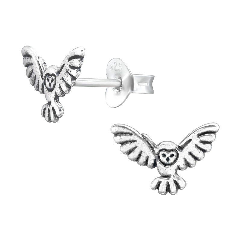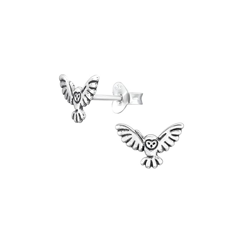 The Rose & Silver Company Women Girls 925 Sterling Silver Oxidised Owl Stud Earrings