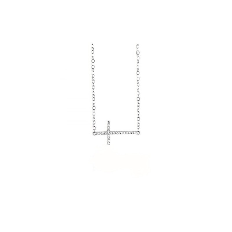 The Royal Gift Sterling Silver 925 Sideways CZ Cross Adjustable Womens Neckla...