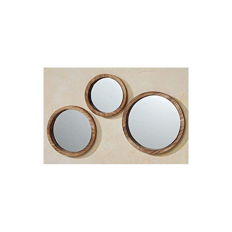 The Rustic Boho Chic Porthole Mirror Trio, Set of 3 - 10, 12 and 13 ¾-Inches Diameter, Glass and Sustainable Wood, By Whole House Worlds