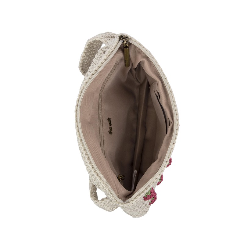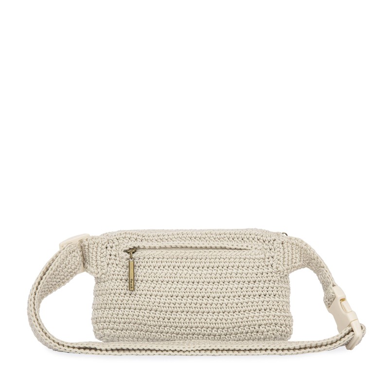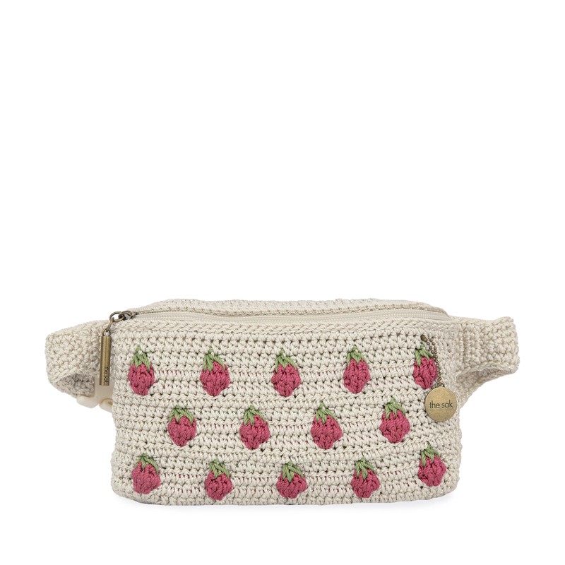 The Sak Caraway Belt Bag in Crochet, Adjustable Back Strap, Natural Strawberries