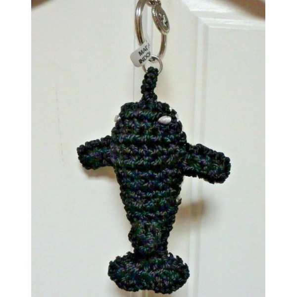 One New With Tags The SAK Repreve Critter Crochet Dangle Ocean Orca Keychain.  This Dangle is part of the Ocean collection using Repreve(Recycled polyester made from plastic water bottles).  Each Critter is Hand-Crochet and Unique.  The Orca is 5"Hx3.5"Wx1.5"D and is 6" long with silvertone keyring.