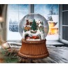 The Rotating Train and Mountain Village Snow Globe from the San Francisco Music Box Company is a unique, captivating gift for everyone who enjoys the magic of Christmas! This intricately detailed orb depicts a quaint, snow-covered alpine village with colorful cottages, a spectacular Christmas tree display, and a bright red train slowly chugging along winding tracks. The striking faux wooden base houses a classic mechanical music player that’ll chime “Silver Bells” upon windup. Listen to the sounds of the season, and shake up your collectible to watch the train embark upon its mountainous journey as a magical snow shower descends upon the picturesque town!