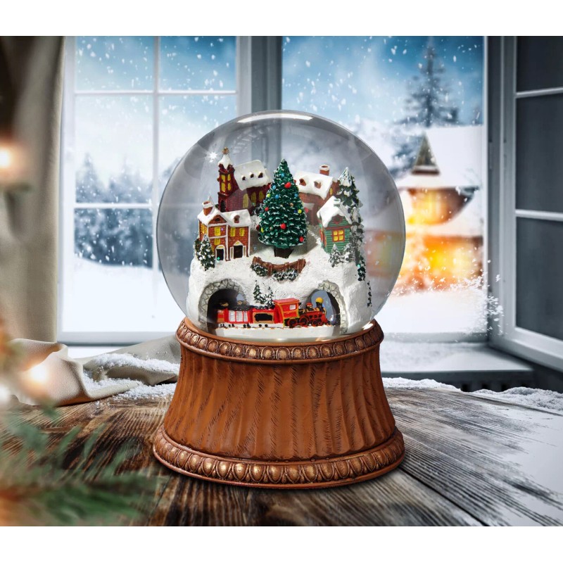 - Collectible Snow Globe Depicts Quaint Mountain Village w/Holiday Décor & Locomotive