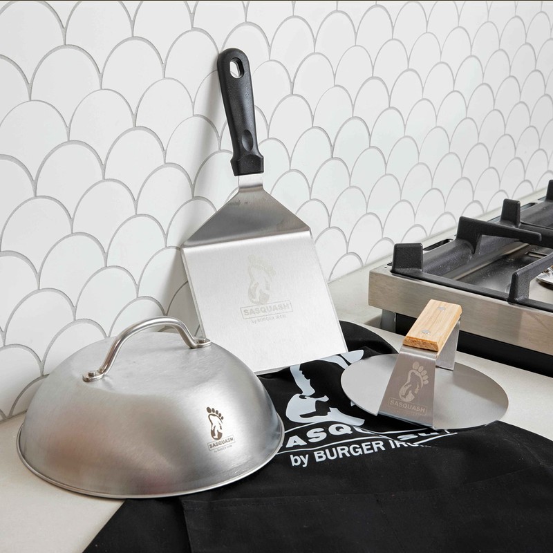 The Sasquash - Mammoth Smash Burger Spatula - Professional Grade Extra Wide Hamburger Turner - Heavy Duty 6 x 5.5 Inch, One Pound Knife Grade Stainless Steel, Blackstone BBQ Griddle and Grill Tool