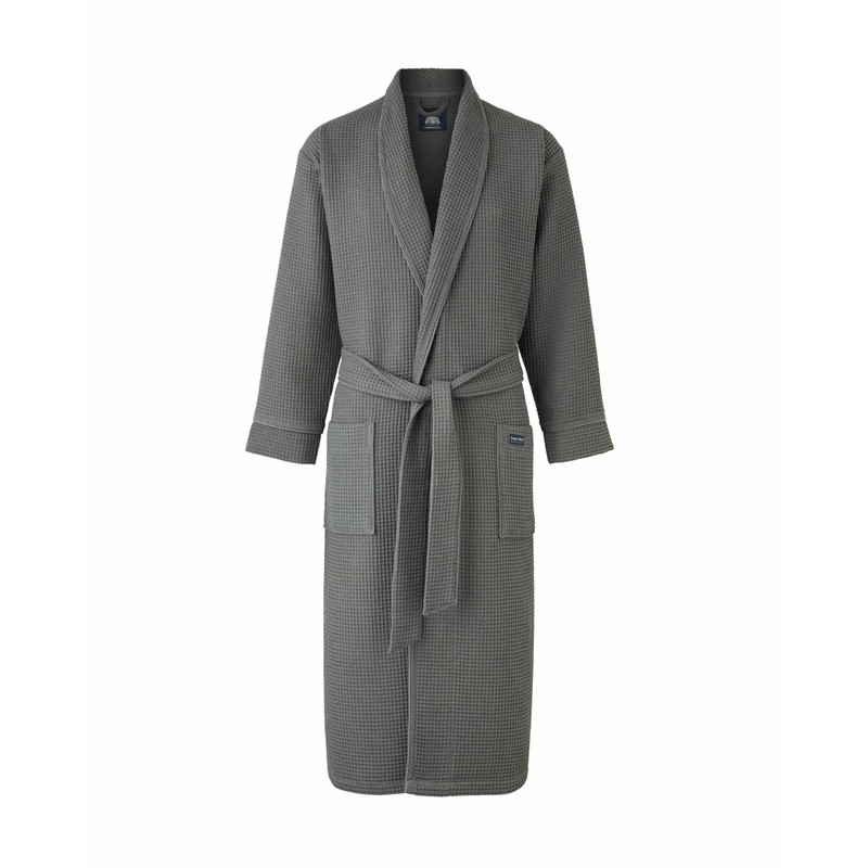 THE SAVILE ROW COMPANY LONDON Men's Lightweight Soft Cotton Waffle Kimono Bathrobe Dressing Gown - Charcoal Grey - Large
