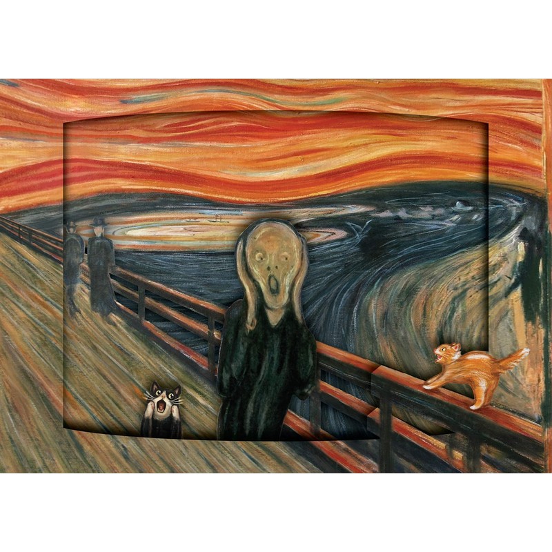 The Scream feat. Cats- 3D Diorama Card- for All Occasions- Art, Pop-up, Greeting Card, Birthday, Family, Congrats, Thinking of You - Fold Flat, Envelope Included