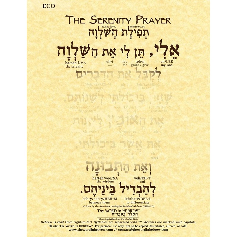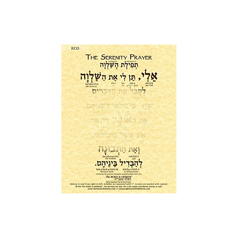 The Serenity Prayer in Hebrew Print (8.5"x11" ECO)