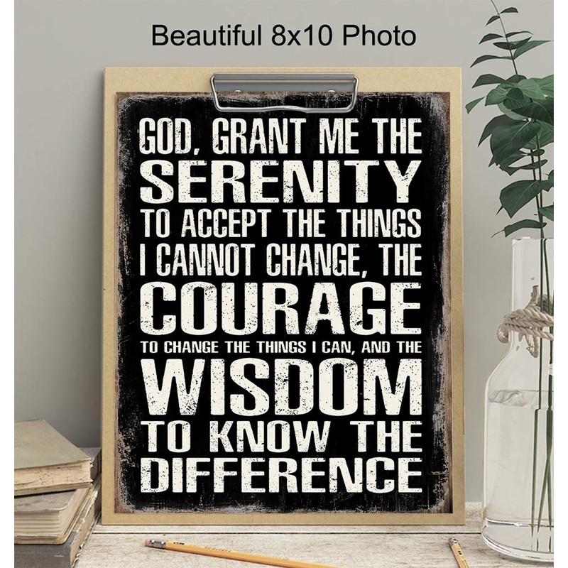The Serenity Prayer Wall Decor - Twelve Steps and Twelve Traditions Wall Art for Home or Apartment Decoration - AA Anniversary Gifts - Alcoholics Anonymous Art Prints - Rustic Sign Replica - Unframed