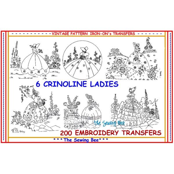 THE SEWING BEE 200 ~ 6 Crinoline Lady - Ladies Embroidery IRON-ON Transfers Patterns