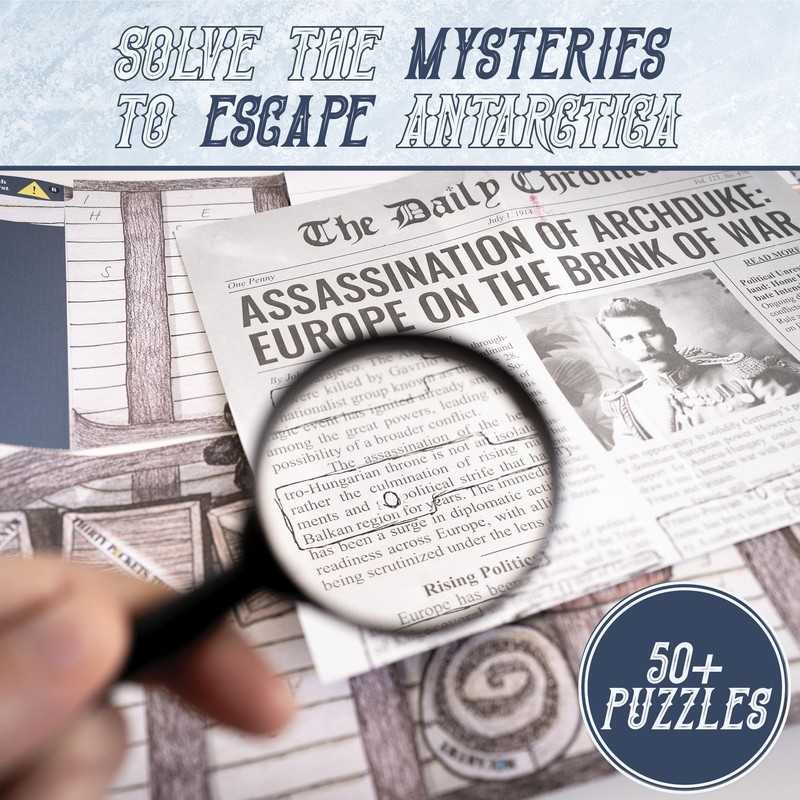 The Shackleton Series, Interactive Puzzle Adventure, replayable, Ages 15+, 1-4 Players, 1-2 Hours per Episode, 6 Episodes Inside, 9+ Hours of Play, Complete Series.