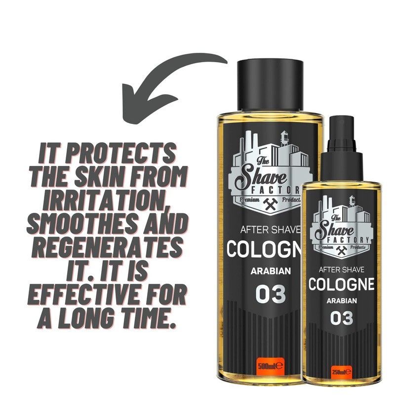 - Various aftershave products are needed by men after shaving. The Shave Factory aftershave cologne series is offered to you in 250ml and 500ml packages and 12 different scent types to meet your needs.