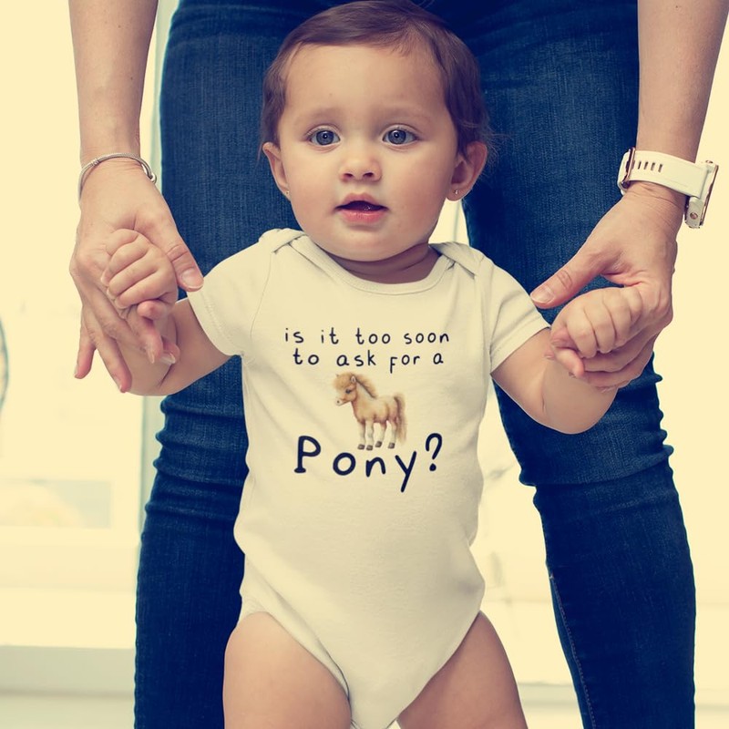 - Is It Too Soon To Ask For A Pony Baby One Piece Bodysuit Or Toddler Shirt Funny Equestrian Baby Outfit