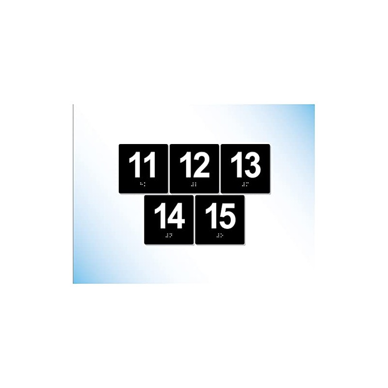 The Sign Studio – 4” x 4” – Exam Room Numbers 11-15 -Braille/Tactile Identification Signs Used for Exam Rooms and Offices – (Black/White)