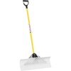 This commercial-grade 24in. Snowplow snowpusher is ready to tackle anything old man winter dishes out. It's perfect for cleaning off decks, steps, sidewalks, patios & driveways. Its ultra rugged, non-abrasive, wood-safe blade is made of revolutionary UHMW polyethylene, providing exceptional durability & Impact Resistance. Use it to push, scrape & even chop.This hard-working shovel is lightweight, with a D-style control grip, reinforced 49 in. Fiberglass handle & easy bolt-together assembly. It comes with a wall hanger clip.