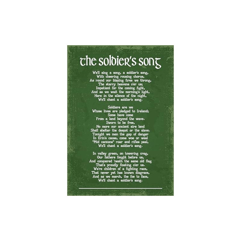 - HISTORICAL ARTWORK: Beautifully presented Irish military poetry featuring 'The Soldier's Song' on a textured green background with vintage-style typography