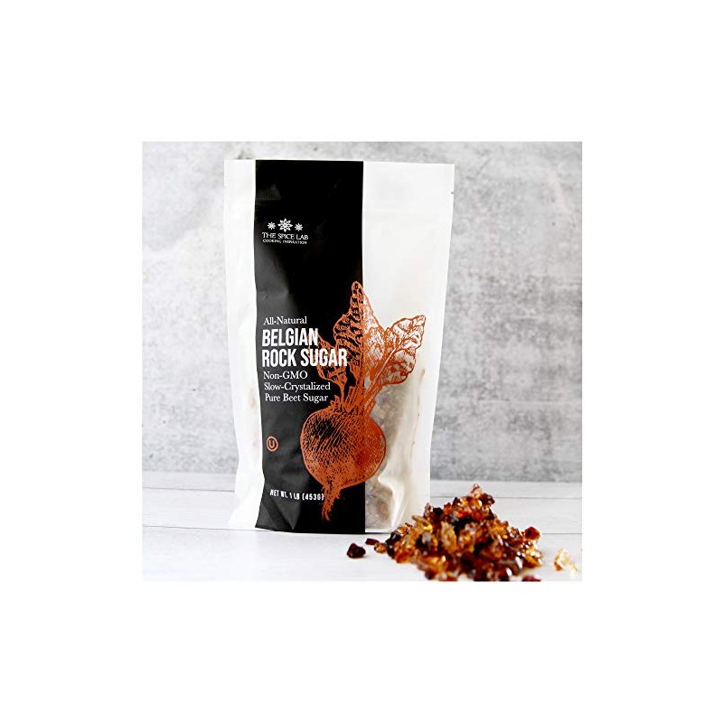 - PREMIUM QUALITY: Belgian brown rock sugar has no added color, unlike amber rock sugar which is made with refined white sugar and caramel coloring. Made in the USA, using premium quality ingredients, this Belgian rock sugar is all-natural, gluten-free, kosher and non-GMO.