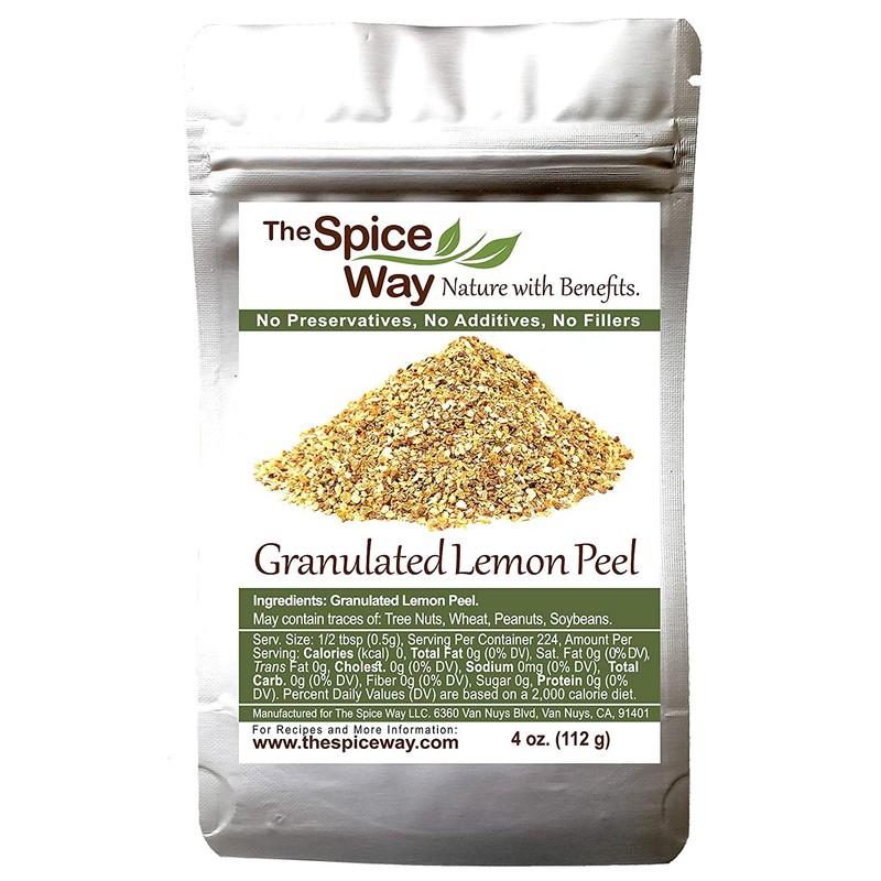 The Spice Way Lemon Peel - Granules | 4 oz | zest and rind without any preservatives. Great for cooking, baking and tea.