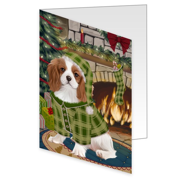 The Stocking Was Hung Christmas - Cavalier King Charles Spaniel Dog Greeting Cards Pets Invitation Cards with Envelopes - Pet Artwork Greeting Cards for All Occasions GCDC49341 (1 Greeting Card)