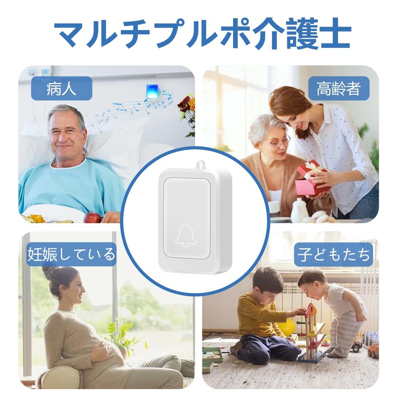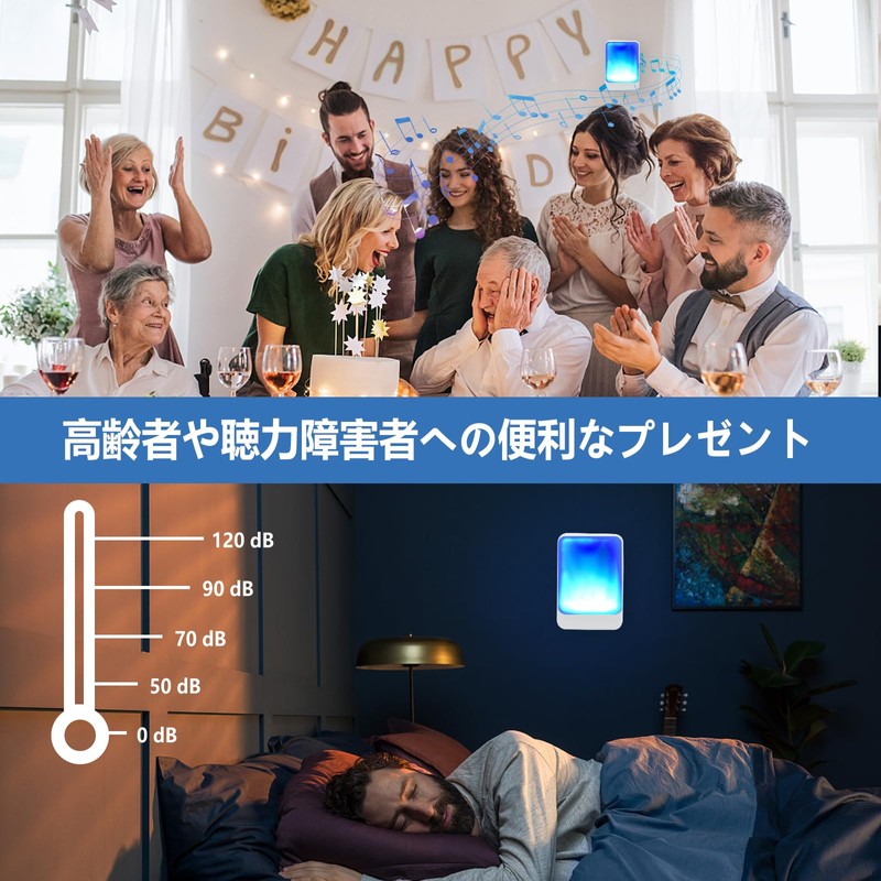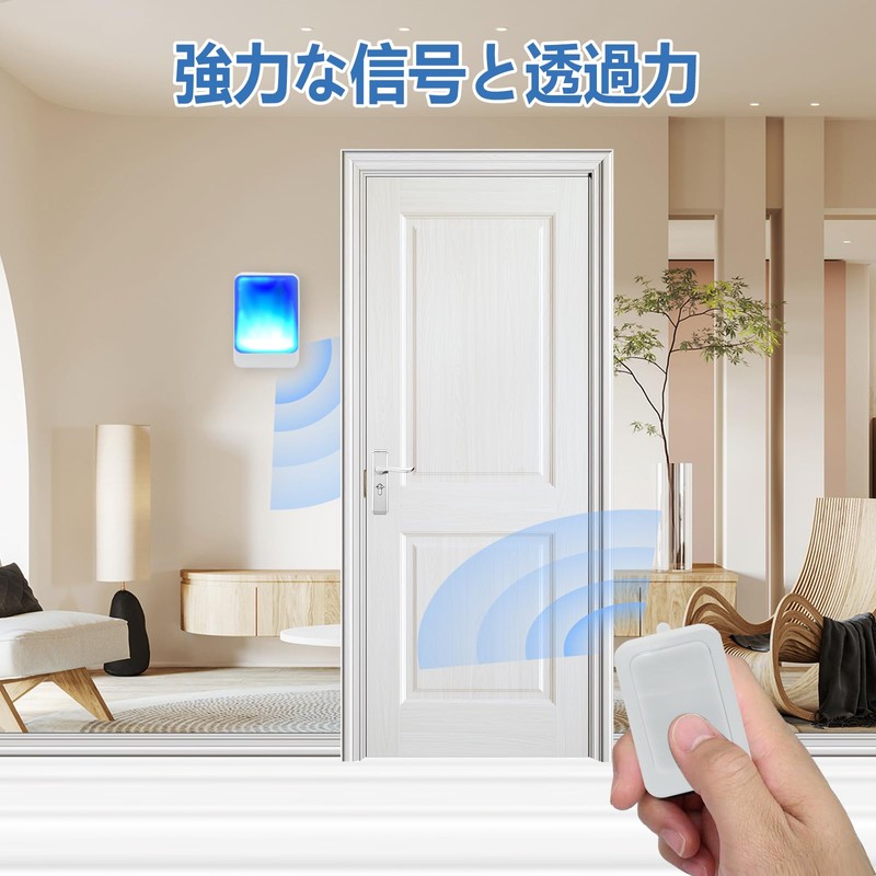 The strong light chime has 7 colors of strong light and 4 volumes, the wireless chime has an effective distance of 100 meters, suitable for the elderly, hearing impaired people at home/office