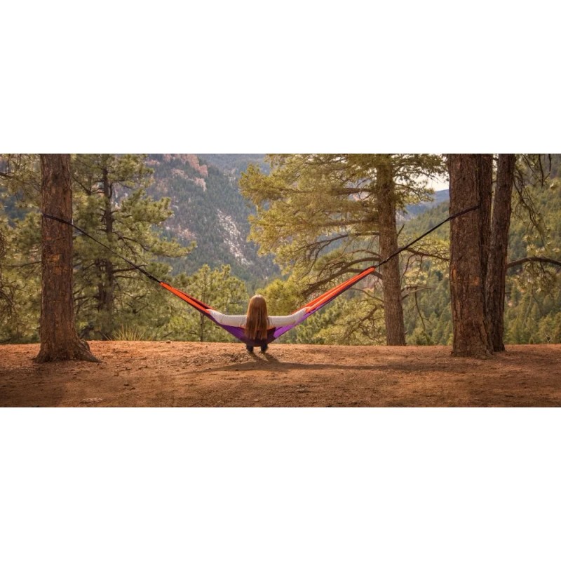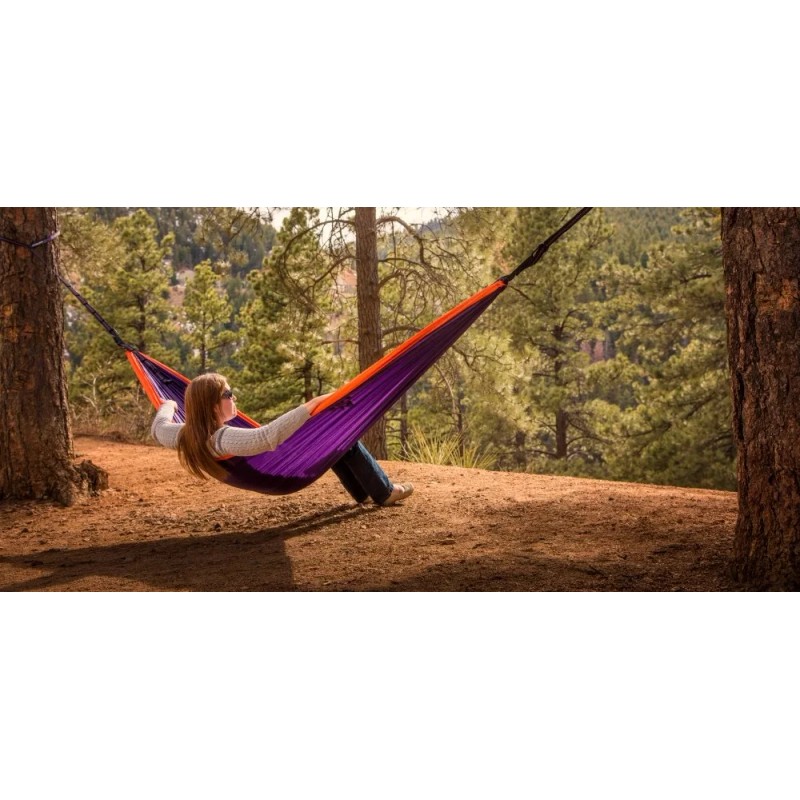 TheSunnysideShoppe SunnySack Lightweight Heavy Duty Parachute Nylon Double Hammock with Tree Straps - Sunset (Purple/Orange)