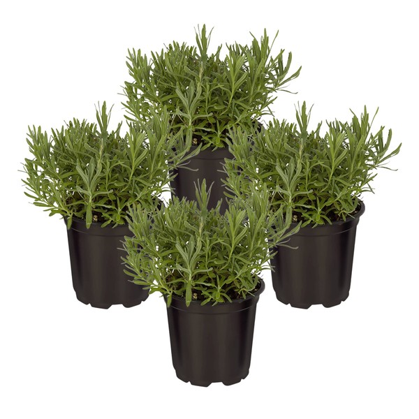 Live Aromatic and Edible Herb - Lavender (4 Per Pack), Natural Sleep Enhancer, 6" Tall by 4" Wide in 1 Pint Pot