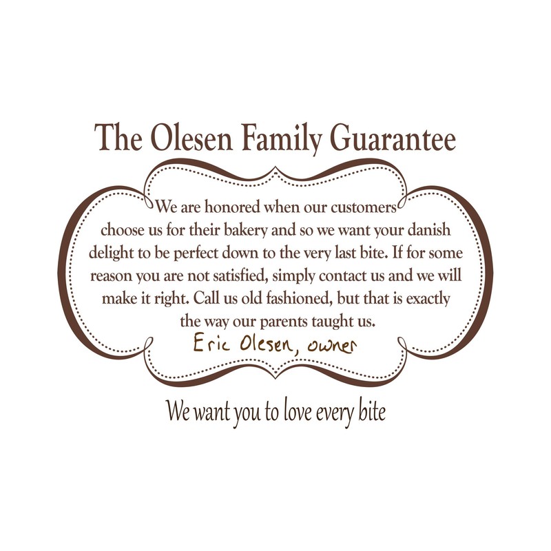 - QUALITY GUARANTEED - Family pride since 1949, all of us here at O&H Danish Bakery are dedicated to quality. We are honored when our customers choose us for their bakery and so we want your danish delight to be perfect down to the very last bite. If for some reason you are not satisfied, simply contact us and we will make it right. Call us old fashioned, but that is exactly the way our parents taught us.