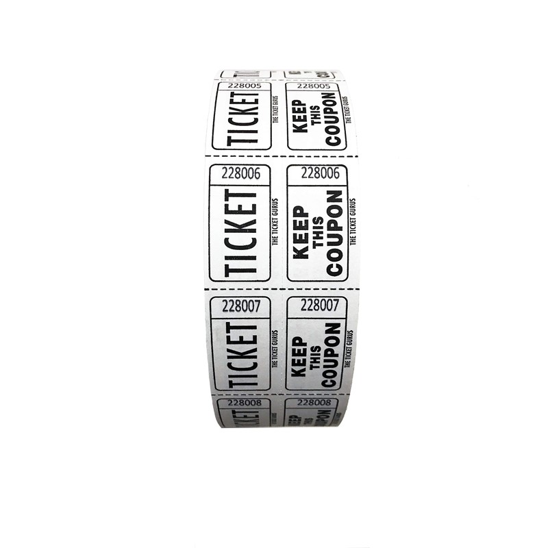 - 2,000 tickets per roll, consecutively numbered--One roll White shipped per order
