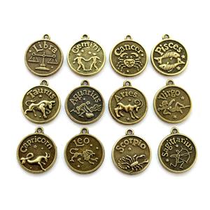 The Tiny Dragon SET OF 12 WESTERN ZODIAC CHARMS 0.7" 18mm Round Pendant Amulet Brass Horoscope