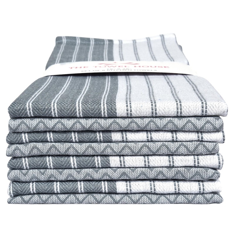 THE TOWEL HOUSE Premium Cotton Weave Kitchen Towels Set – Ultra Absorbent, Quick-Dry Dish Towels with Hanging Loop – Extra Large 18x28 Inches – Grey (Pack of 8)