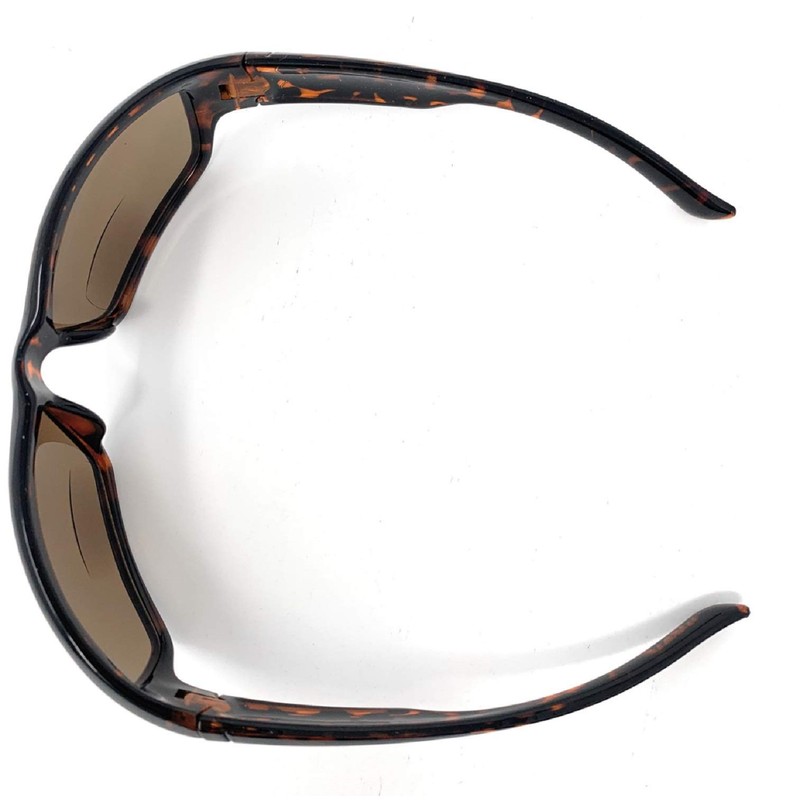 - PLASTIC FRAME: This unisex sport & wrap around frame features a stylish, fashionable, trendy, rectangular shape. POLYCARBONATE LENSES: These flat top bifocal lenses have thin anti-glare, tinted lenses.