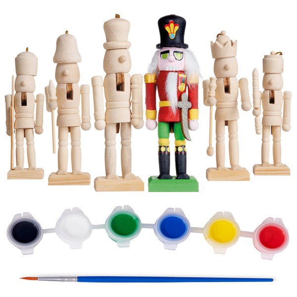 - 🎨Perfect Kids Gift - The dimensions of these nutcrackers are 4 x 3.1 x 13.3 cm. Set includes 6 DIY hanging nutcrackers with paints, paintbrush, stickers, and beards.