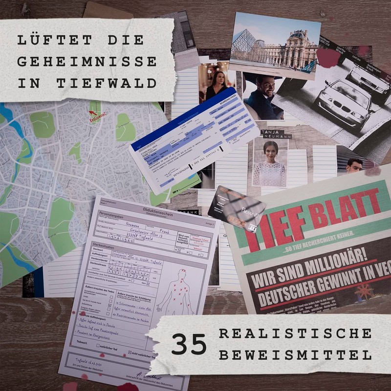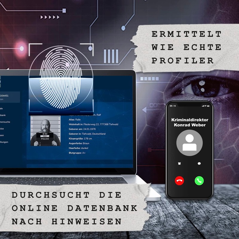 The Unknown True Crime - A live crime game for real investigators! Your team, consisting of LKA profilers in training, has already done it far. Now you are facing your first real case. From your instructor you will receive a file with all the evidence of a murder case. Now it is up to you to check alibis, discover clues and convict the perpetrator. During your hunt for the perpetrator, you experience a multidimensional detective board game based on a true event. As real detectives, you have to follow every track, mobile phones and the Internet are also allowed. Therefore, it is necessary that you have at least one Internet-enabled device while playing. At The Unknown you have access to a realistic database where you can find suspicions, listen to interrogations and solve the case! We recommend you play the game with a group size of 2-6 people. But it is also possible to play the game alone. The game is suitable for both beginners and advanced users. The board game is suitable for families, friends or as a special gift. From 14 years, teenagers can also become investigators and detectives on their own. For younger children, the case is too complex. As a family, children can support very well as investigators. The game is also available via zoom or similar. Playable. Each participant needs the materials, otherwise it can be difficult to solve the case.