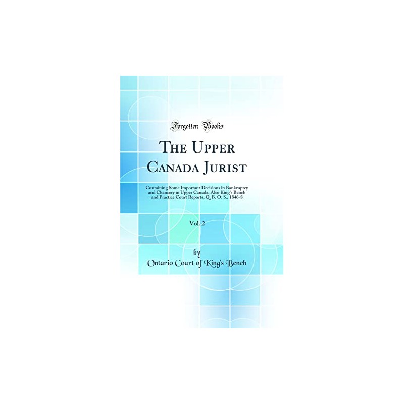 The Upper Canada Jurist, Vol. 2: Containing Some Important Decisions in Bankruptcy and Chancery in Upper Canada; Also King's Bench and Practice Court Reports; Q. B. O. S., 1846-8 (Classic Reprint)