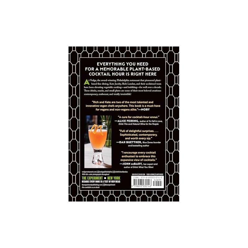 Everything you need for a memorable cocktail hour is right hereDwith 75 innovative plant-based drinks and snacksSophisticated, contemporary, and worth every sip.DDan Buettner, Blue Zones founder and bestselling authorAt Vedge, the award-winning Philadelphia restaurant that pioneered plant-based fine dining, Kate Jacoby, Rich Landau, and their acclaimed team have been elevating vegetable cookingDand imbibingDfor well over a decade. They believe a good drink is an indulgent, multisensory experience worth savoringDand even better when paired with the right snack or small plate and enjoyed among friends.Drawing inspiration from fresh produce and the rhythms of nature, the 75 all-vegan drinks, bar snacks, and small plates shared here are some of their most beloved creations, with imaginative flavor combinations you'll find nowhere else. Drinks that capture the essence of the season: Daffodil, Smoked Corn Silk Old Fashioned, Golden Apple Fruity refreshers: Per My Last Email, Even Cowgirls Get the Blues, Strawberry Smash Holiday partyCworthy sips: Bury the Hatchett, Last-Minute Tradition, Old Acquaintance Inventive riffs on old classics: Fig Leaf Bourbon Sour, Afternoon Snack, Front Porch Swing Light bites and bar snacks: Sichuan Popcorn, Lima Bean Pistou on Toast, Skewered Shiitakes with Buttered Corn Sauce, Rutabaga FondueYou'll also find a guide to essential tools and ingredients, plus tips for mastering key techniques and garnishing like a pro.Contemporary, exuberant, and totally irresistible, The Vedge Bar Book is a sensual celebration and a must-have for holiday hosts, cocktail connoisseurs, and plant-based foodies alike. Approximately 75 four-color photos
