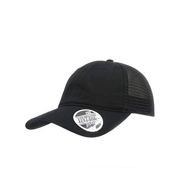 The Vintage Year Washed Cotton Low Profile Mesh Adjustable Trucker Baseball Cap (Black B)